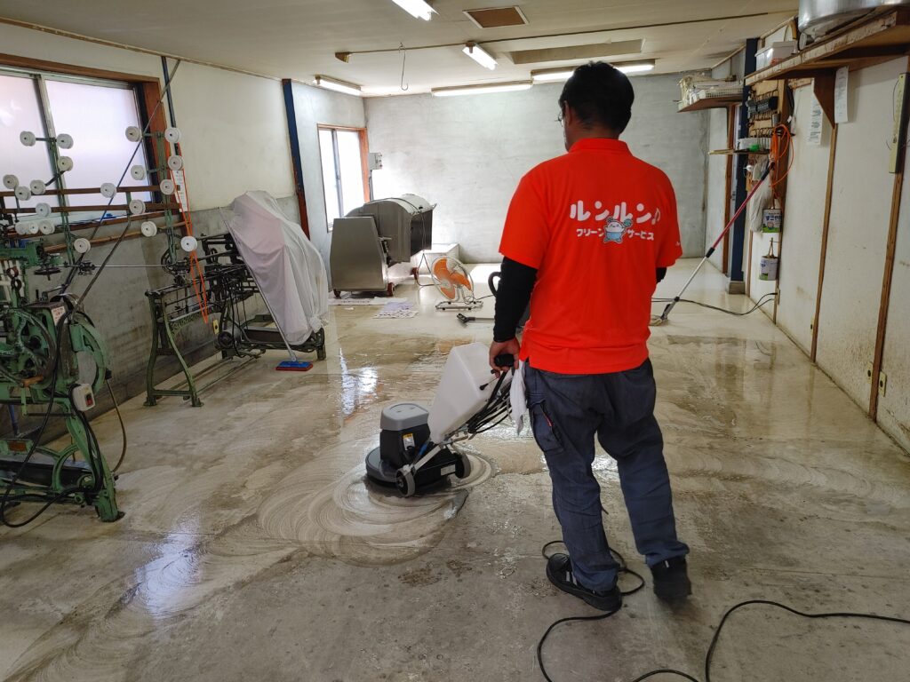 粉汚れもスッキリ!そうめん屋さんの作業場フロア清掃